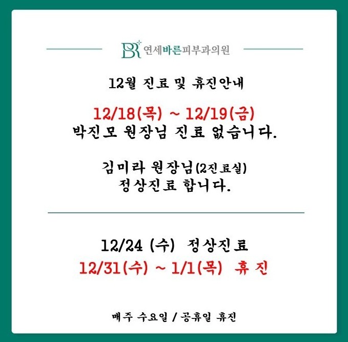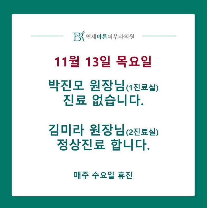 토 : 오전 9시 ~ 오후 1시수 / 일 : 휴진